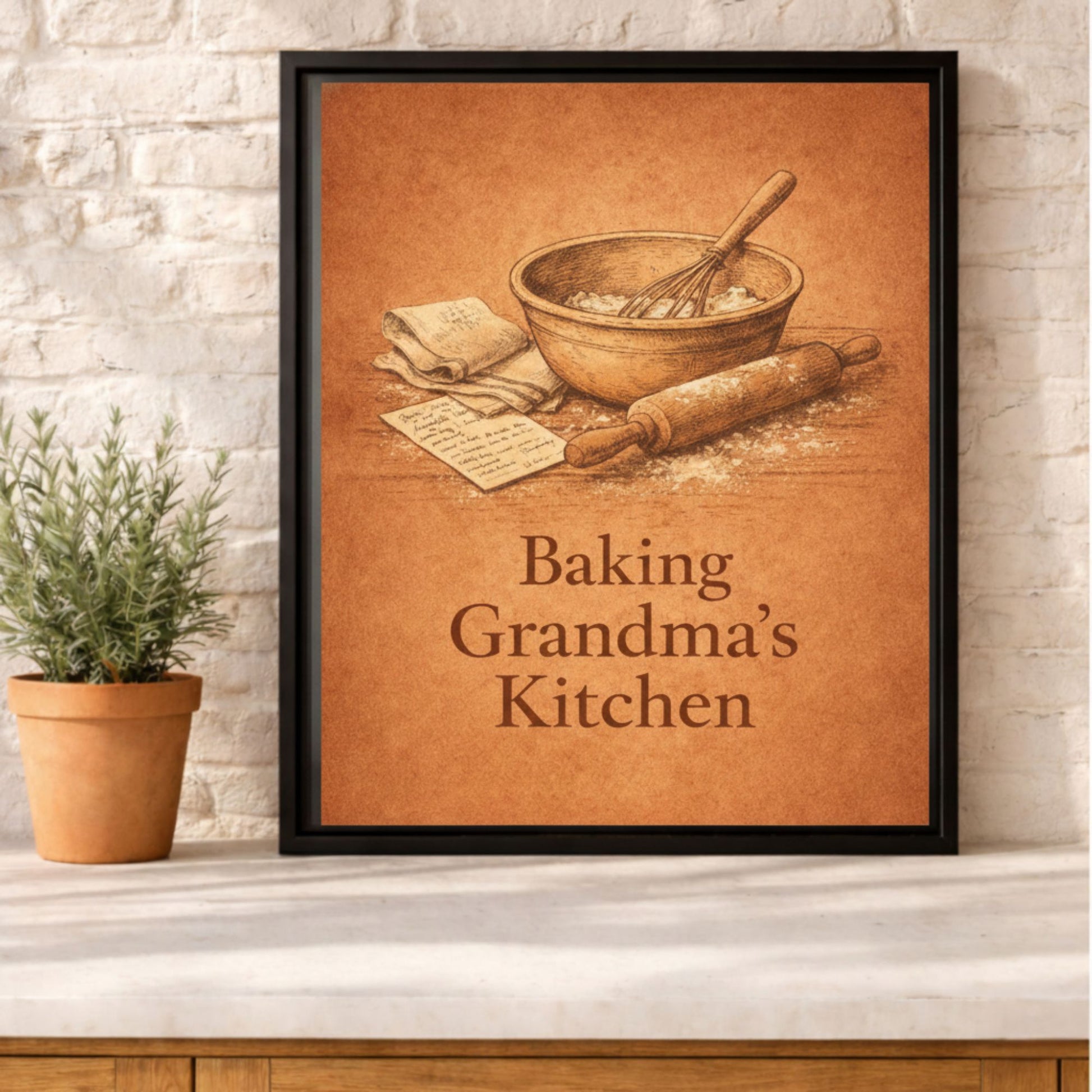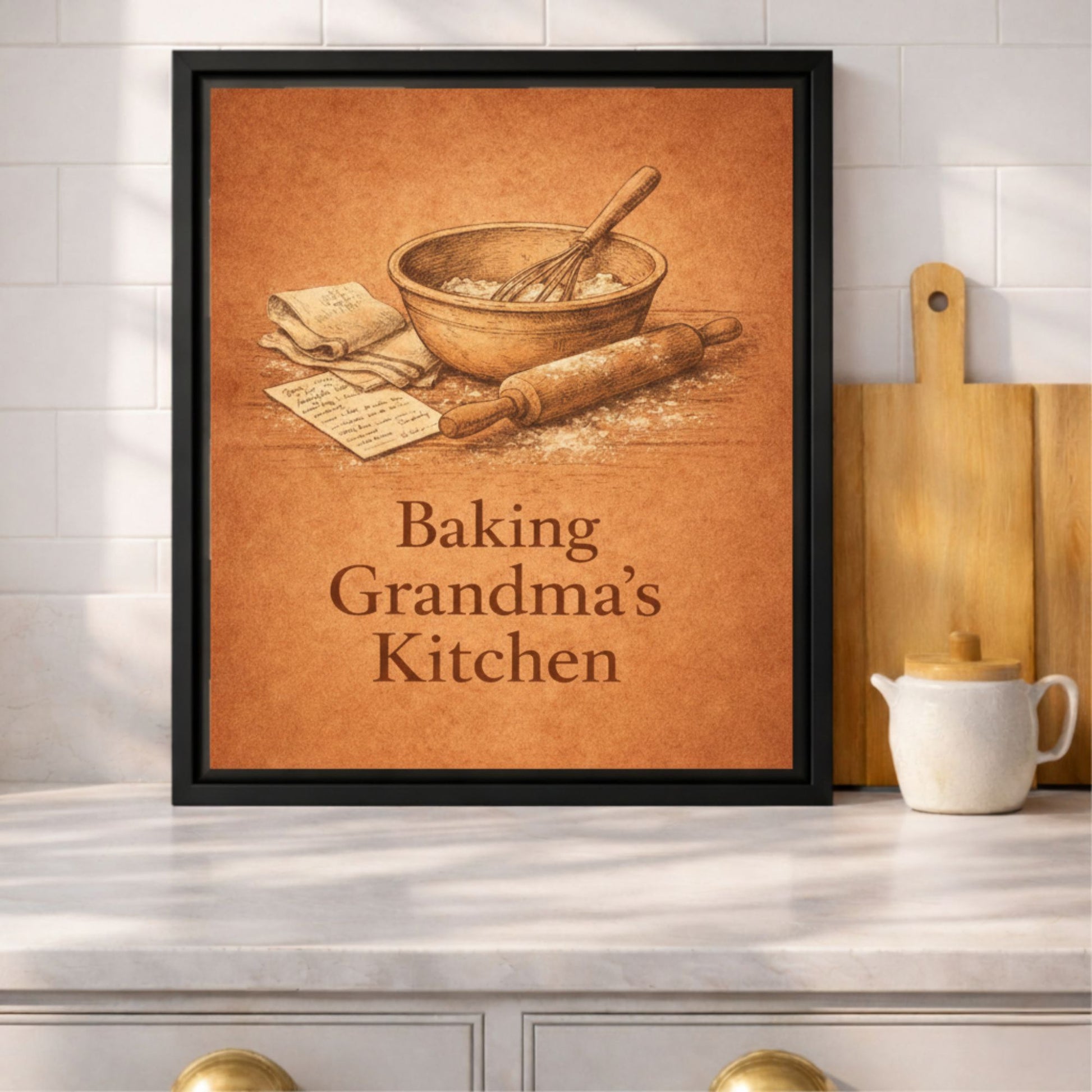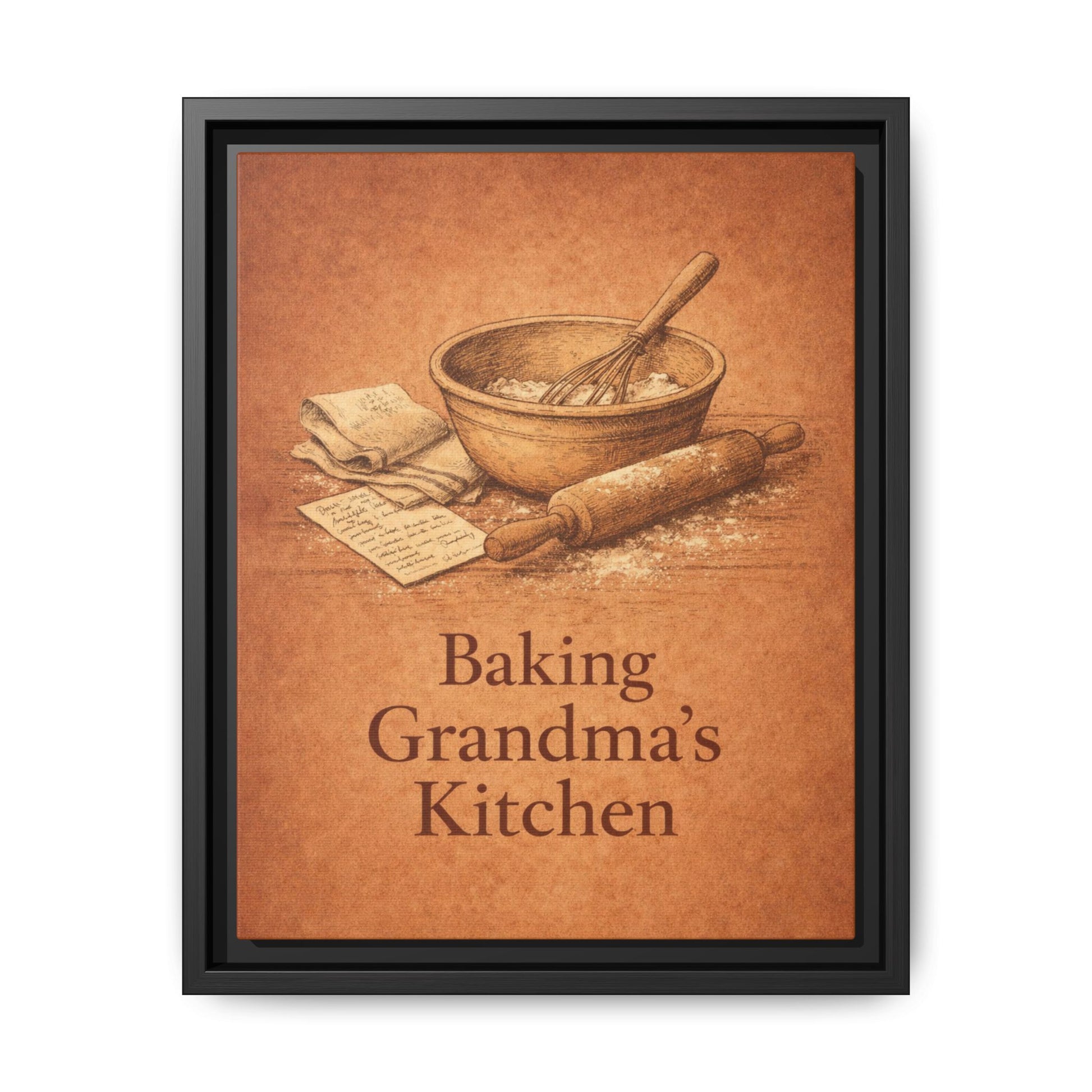 This framed canvas brings a soft, comforting touch to your space. Inspired by handwritten recipes, well-worn tools, and kitchens filled with love.