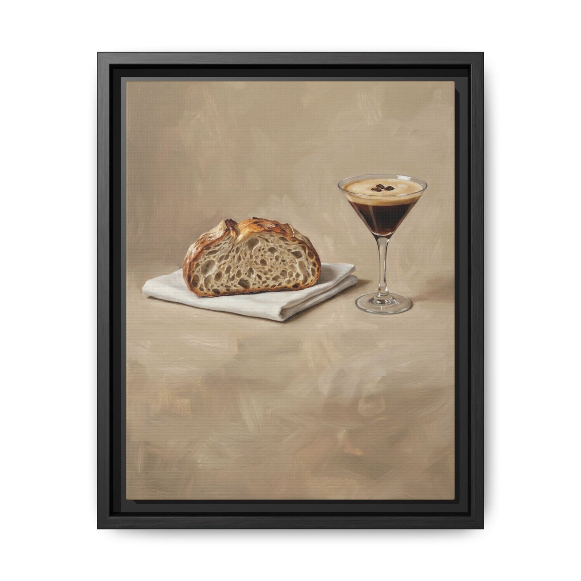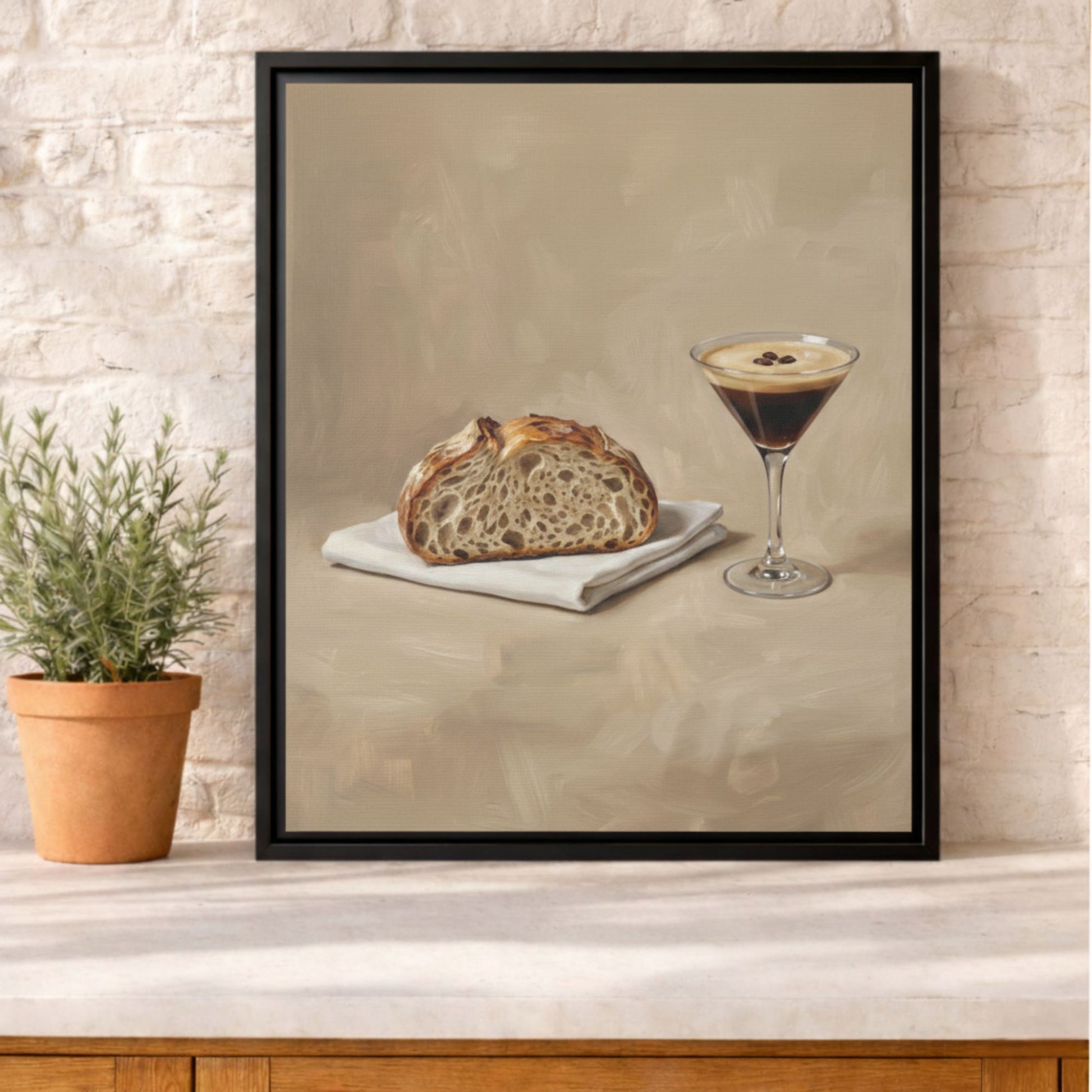 This framed canvas brings a calm, grounding presence into your kitchen — a quiet celebration of slow mornings, good bread, and a perfectly brewed shot of espresso.